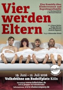 Vom 19.06. bis am 12.07.2026 spiele ich in „Vier werden Eltern“ an der Volksbühne am Rudolfplatz in Köln.